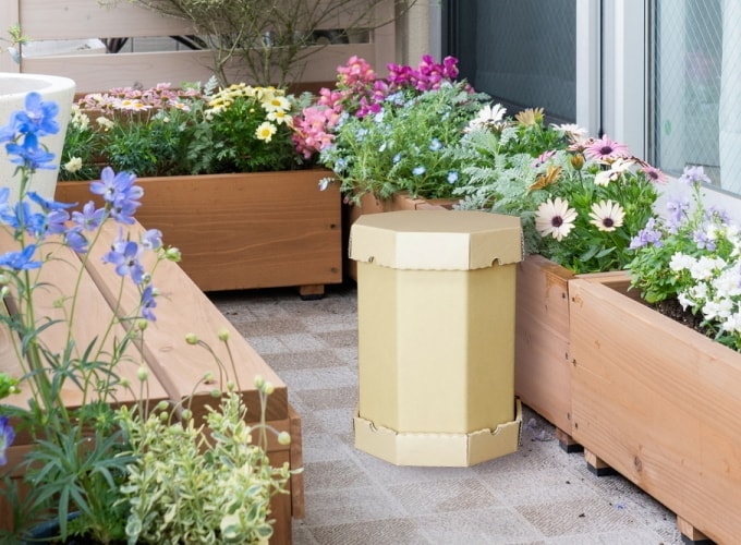 電源を使わず、気軽に始めることができて臭いが少なく場所を取らないので、庭がなくてもベランダや玄関先でも取り組むことができます。